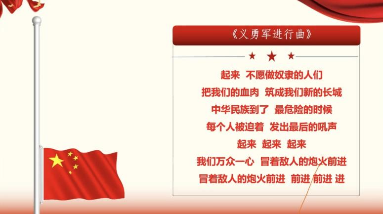 会议伊始,全体成员在屏幕前肃然起立,奏唱国歌。在庄严的国歌声中,本次党日活动正式开始。