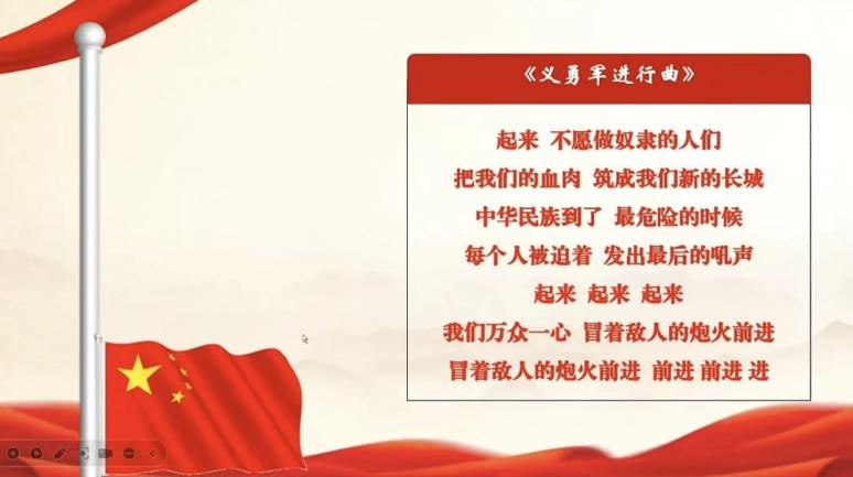 会议伊始,全体成员在屏幕前肃然起立,奏唱国歌。在庄严的国歌声中,本次党日活动正式开始。