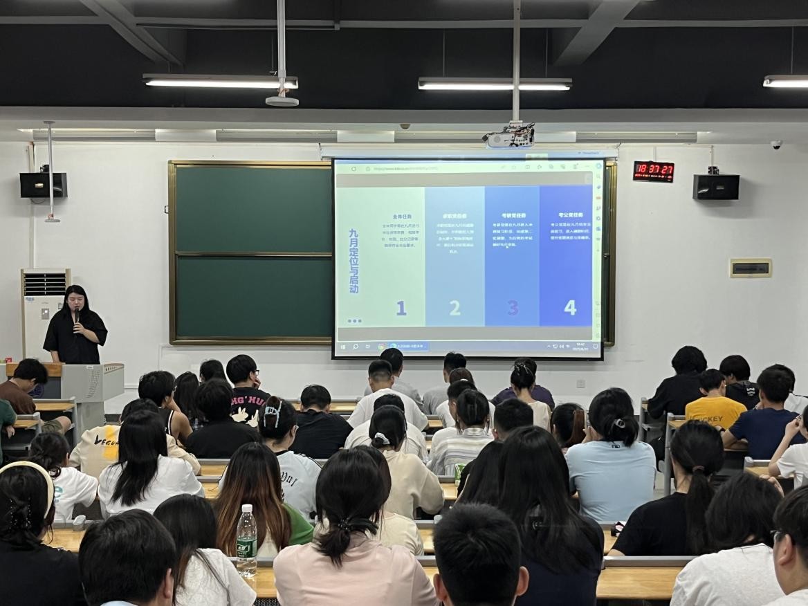 二、翟婷老师针对大二学业任务加重的情况,给出时间管理建议与自主学习策略,呼吁大家积极参与学术讲座和社团活动;分享压力管理方法,助同学们排解压力、保持健康心理;强调新学期要设定目标并努力。