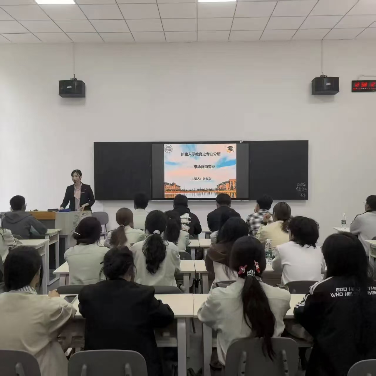 市场营销专业主讲老师刘金文则以“营销是企业核心职能”为引,解锁专业成长密码。她首先介绍了相关专业知识,随后围绕二手商品销售实训、专业综合实训详细讲解了实训如何锤炼销售技巧以及市场洞察能力。同时,她鼓励同学们多多参与学科竞赛积累相关知识,进而实现从知识学习到能力转化的跨越。