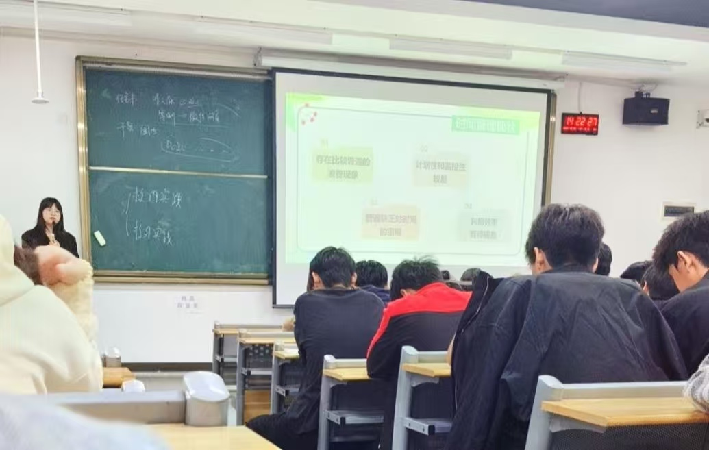 在时间管理基础上,江雯老师将话题延伸至生涯规划,强调有效时间管理是生涯规划落地的关键。她指出大学四年学生需在专业学习、技能提升、社会实践(校内实践与校外实习)等方面合理分配时间,明确各阶段目标。同时,鼓励学生以时间管理为抓手,将生涯规划拆解为可执行小目标,通过高效利用时间逐步实现自我成长,自我进步。