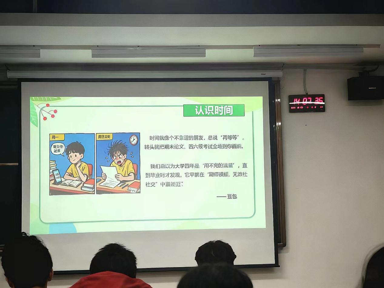 此次心理讲座内容详实、案例生动、方法实用,为商学院2024级学生在时间管理和生涯规划方面提供专业指导。学生们表示,将把讲座所学运用到实际生活中,合理规划时间,明确生涯方向,在大学成长之路上稳步前行,以积极姿态迎接未来挑战与机遇。
