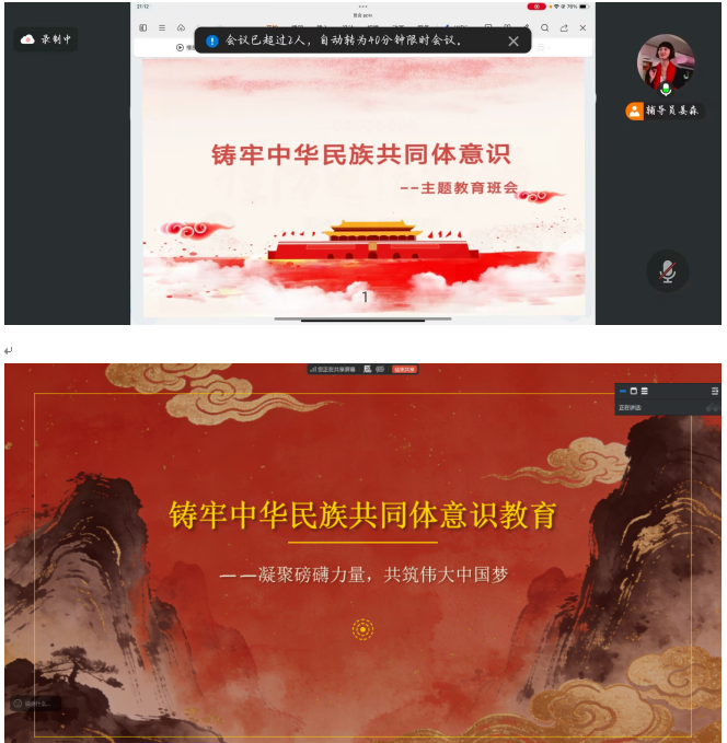 多位辅导员老师结合所带学生实际,创新活动形式、丰富活动内容,让民族团结教育落地生根。李成成老师以中华经典诵读为核心,于 3 月 15 日 19:00 组织24级专科全体学生在教3-206教室开展线下主题班会,引导学生在经典诵读中感受中华文化魅力,厚植民族团结情怀;针对毕业生学业繁忙、分散各地的特点,姜森老师、佘万军老师等为所带毕业班级精心策划线上主题活动,通过线上经典共读、民族文化故事分享、民族团结话题研讨等形式,让毕业生们云端相聚,在交流中深化民族认同;毛前平老师组织2025级学生开展民族知识小课堂,结合图文、短视频等素材讲解各民族历史文化与风俗习惯,引导学生了解各民族交融共生的发展历程。