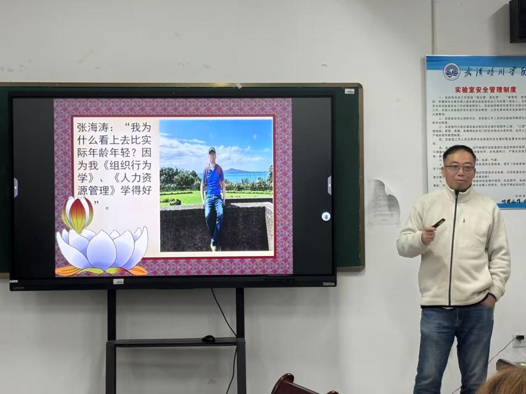(通讯员:李冠男 )为精准对接新时代商科人才培养需求,搭建学术交流与实践探讨平台,助力学子明晰专业发展方向,武汉晴川学院商学院于2025年12月12日15:30,在综2-202举办“逐光而行,共探商科育人新路径”学术讲座,本次讲座特邀张海涛教授担任主讲,围绕商科教育的迭代升级与人才能力重塑展开了一场深入浅出的分享。